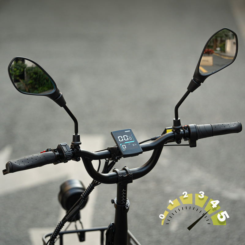 Color LCD Display: The center color LCD display shows speed and assist levels (0–5) at a glance with one-touch lighting & turn-signal control.