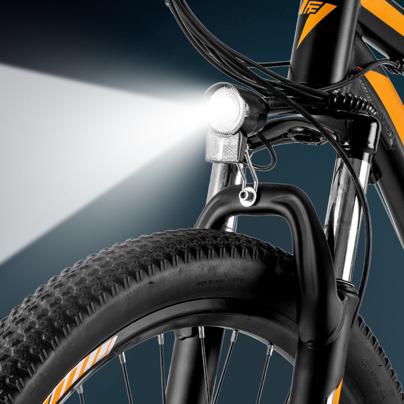 Powerful and adventure-ready, the F28 MT combines a 250W motor, 15Ah high-capacity battery, 21-speed gears, and 27.5" mountain tires — built for confident off-road rides and extended outdoor exploration.